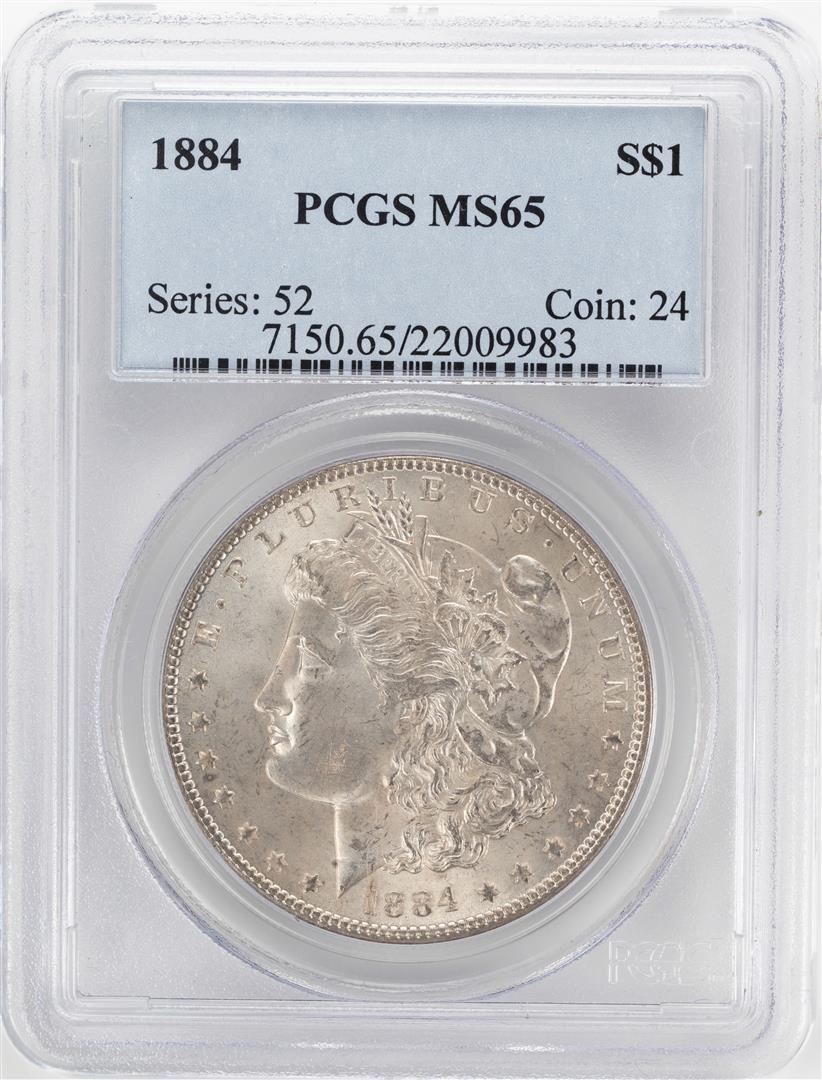 One 1884 $1 Morgan Silver Dollar Coin PCGS MS65. PCGS Graded.