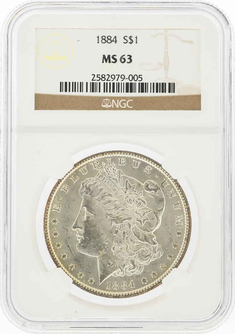 One 1884 $1 Morgan Silver Dollar NGC Graded MS63. NGC Certified.