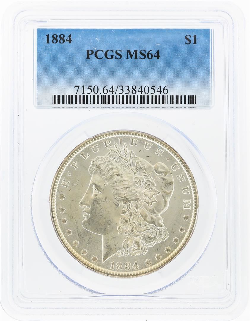 One 1884 $1 Morgan Silver Dollar PCGS Graded MS64. PCGS Graded.