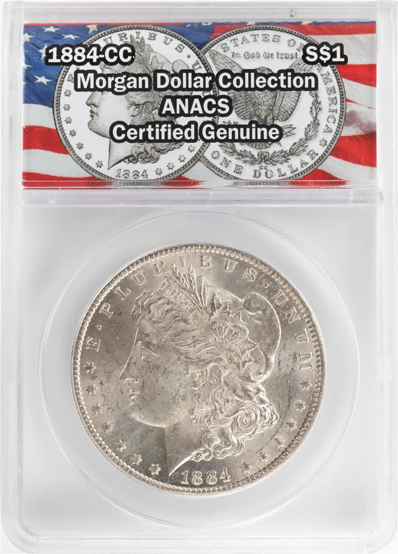 One 1884-CC $1 Morgan Silver Dollar Coin ANACS Certified Genuine. ANACS Certified.