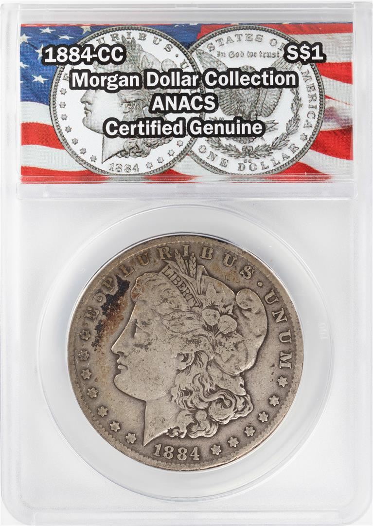 One 1884-CC $1 Morgan Silver Dollar Coin ANACS Certified Genuine. ANACS Certified.