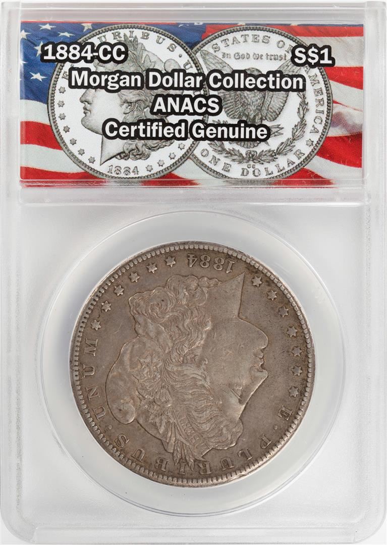 One 1884-CC $1 Morgan Silver Dollar Coin ANACS Certified Genuine. ANACS Certified.
