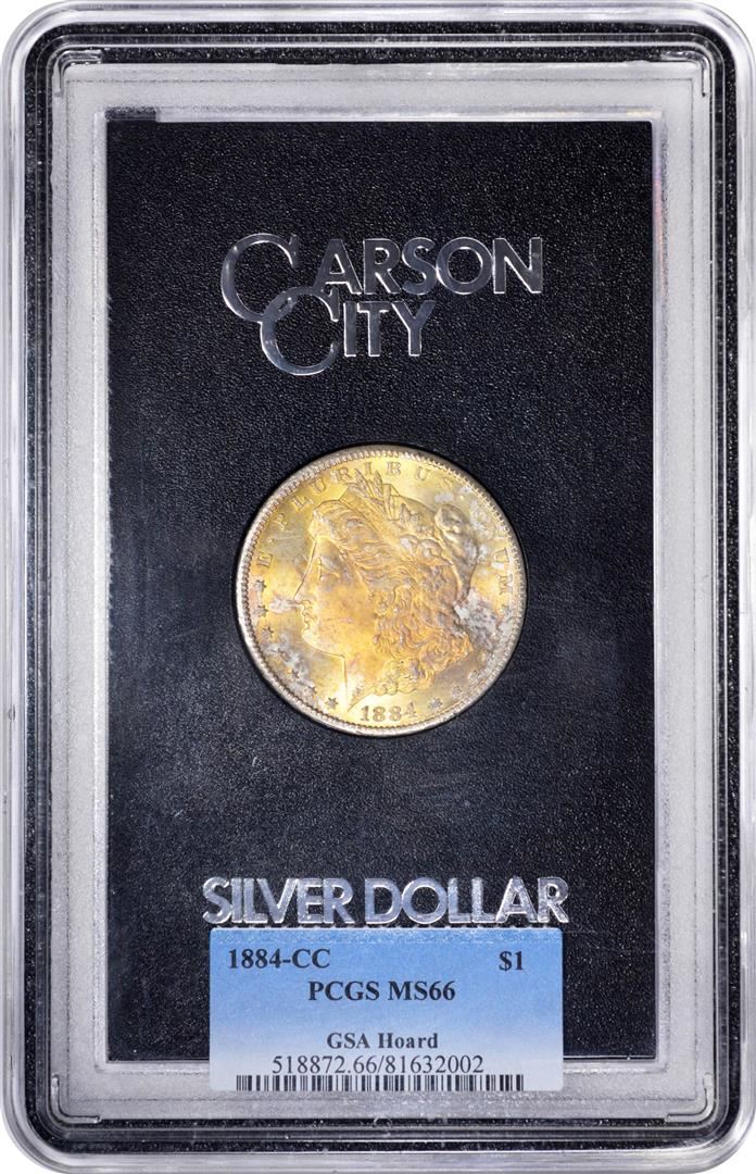 One 1884-CC $1 Morgan Silver Dollar Coin GSA Hoard PCGS MS66 Great Toning. PCGS Graded.