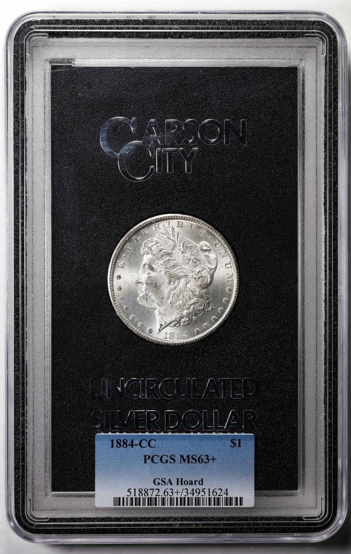 One 1884-CC $1 Morgan Silver Dollar Coin GSA Hoard Uncirculated PCGS MS63+. PCGS Graded.