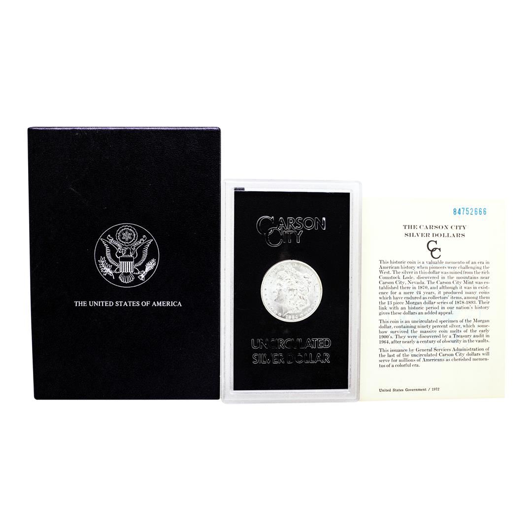 One 1884-CC $1 Morgan Silver Dollar Coin GSA Hoard Uncirculated w/Box & COA.