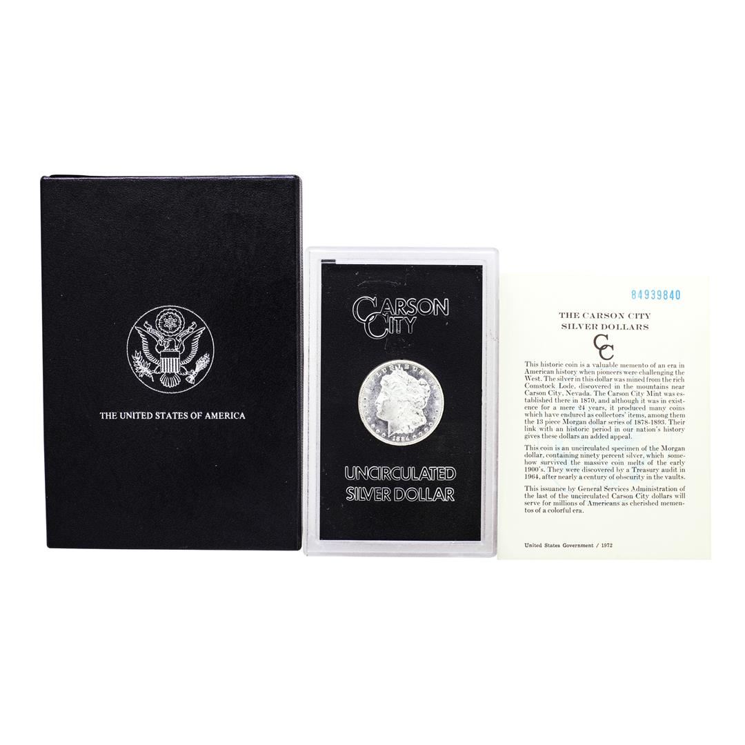 One 1884-CC $1 Morgan Silver Dollar Coin GSA Hoard Uncirculated w/Box & COA.