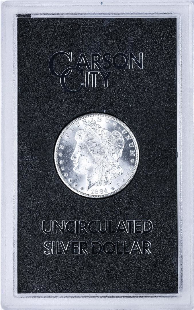 One 1884-CC $1 Morgan Silver Dollar Coin GSA Hoard Uncirculated w/Box & COA.