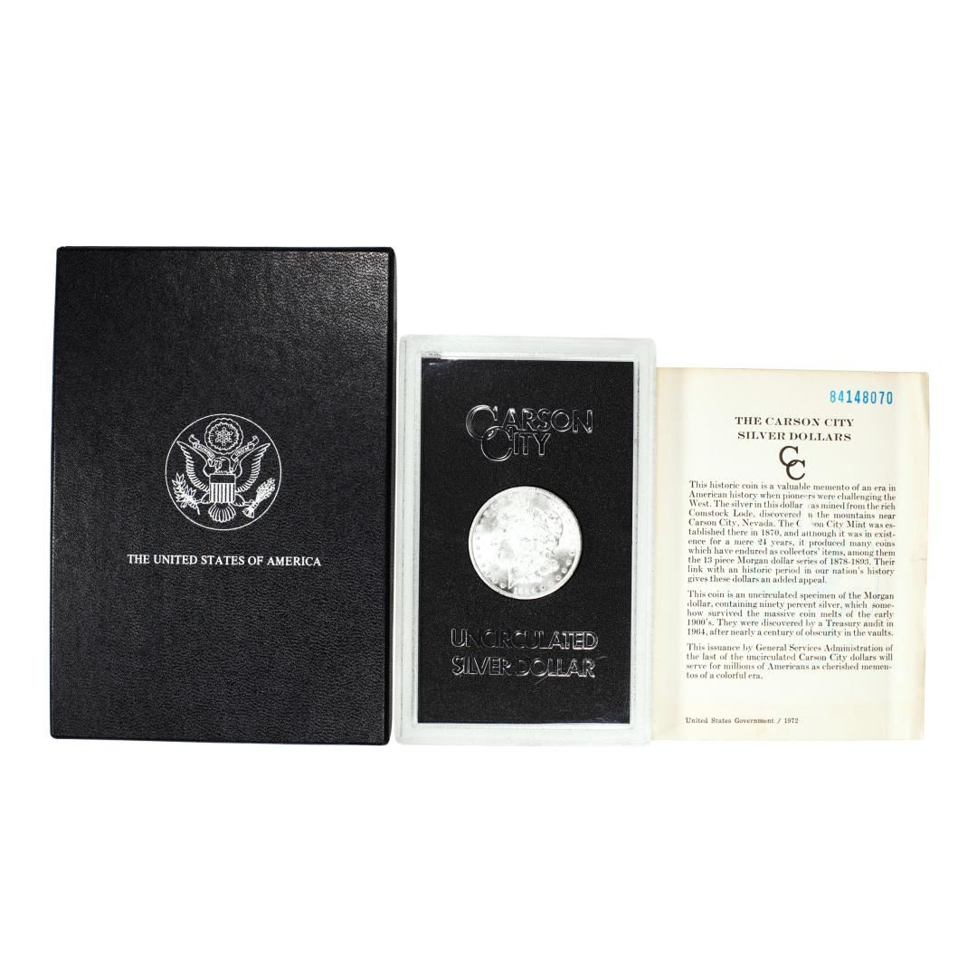 One 1884-CC $1 Morgan Silver Dollar Coin GSA Hoard Uncirculated w/Box & COA.