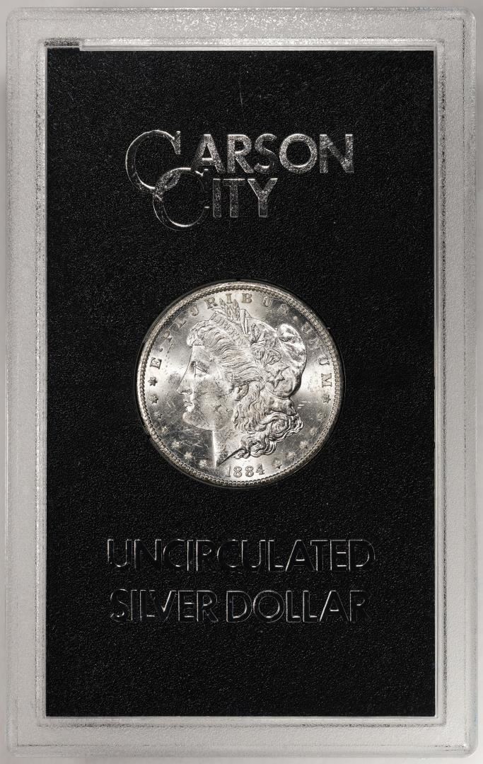 One 1884-CC $1 Morgan Silver Dollar Coin GSA Hoard Uncirculated w/Box & COA.