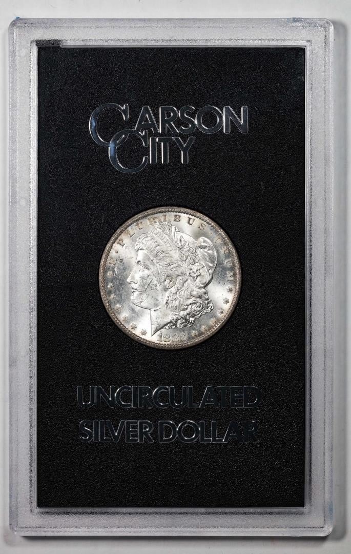 One 1884-CC $1 Morgan Silver Dollar Coin GSA Hoard Uncirculated w/Box & COA.