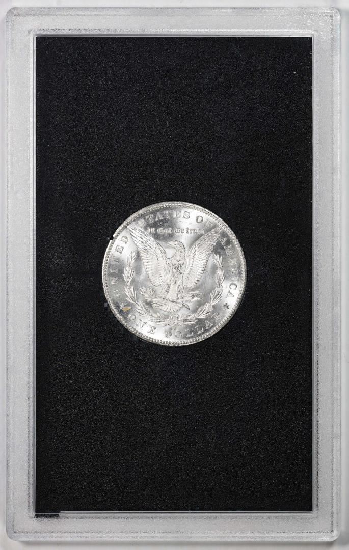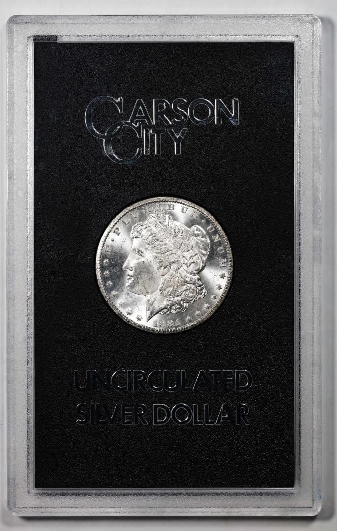 One 1884-CC $1 Morgan Silver Dollar Coin GSA Hoard Uncirculated w/Box.