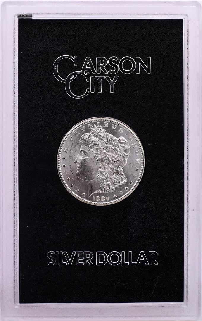 One 1884-CC $1 Morgan Silver Dollar Coin GSA Hoard w/Box & COA.