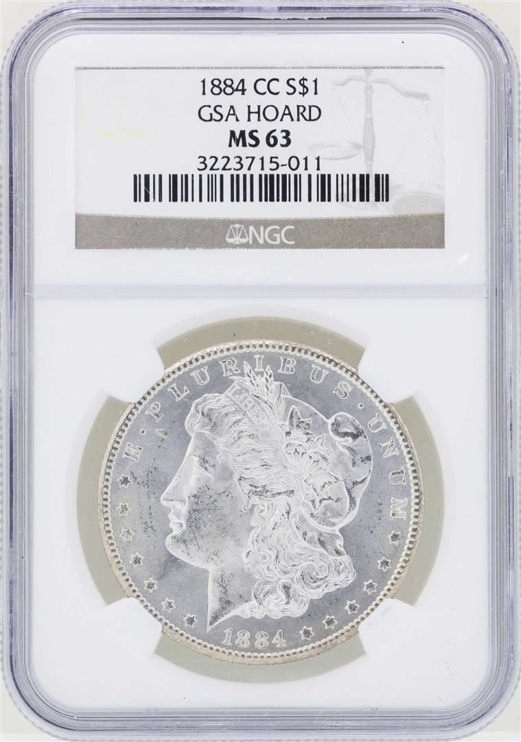 One 1884-CC $1 Morgan Silver Dollar Coin NGC MS63 GSA Hoard. NGC Certified.