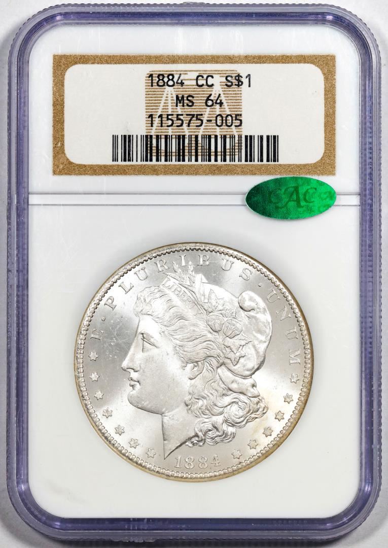One 1884-CC $1 Morgan Silver Dollar Coin NGC MS64 CAC. NGC Certified.