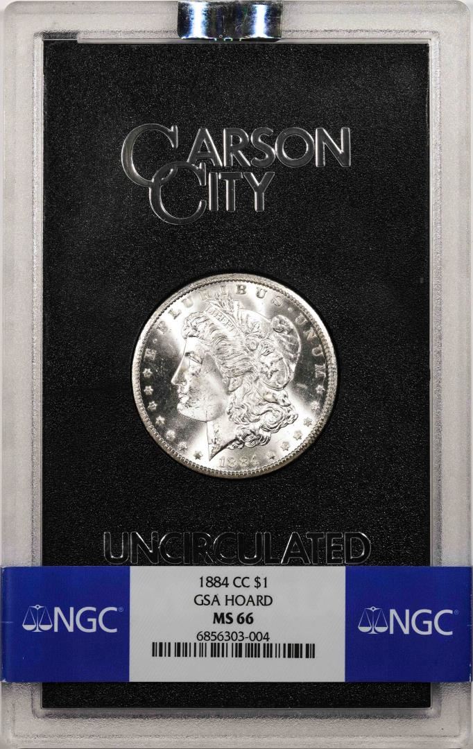 One 1884-CC $1 Morgan Silver Dollar Coin NGC MS66 GSA Hoard Uncirculated. NGC Certified.
