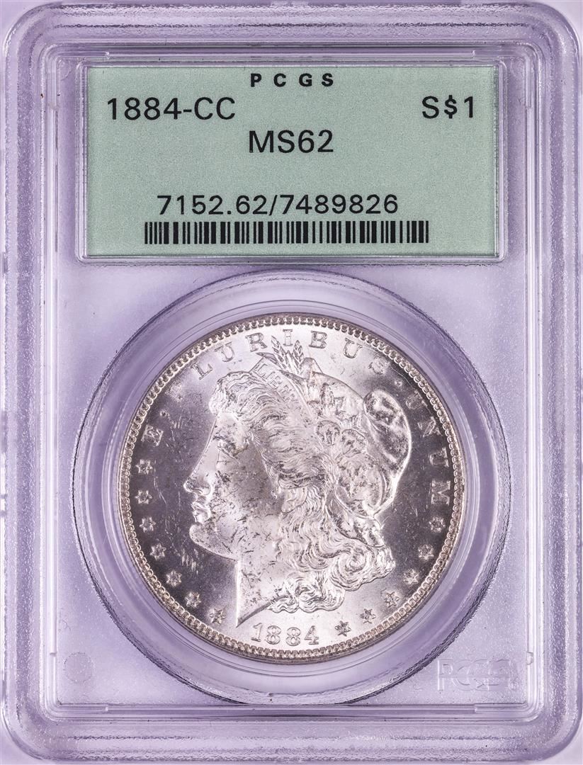 1884-CC $1 Morgan Silver Dollar Coin PCGS MS62 Old Green Holder
