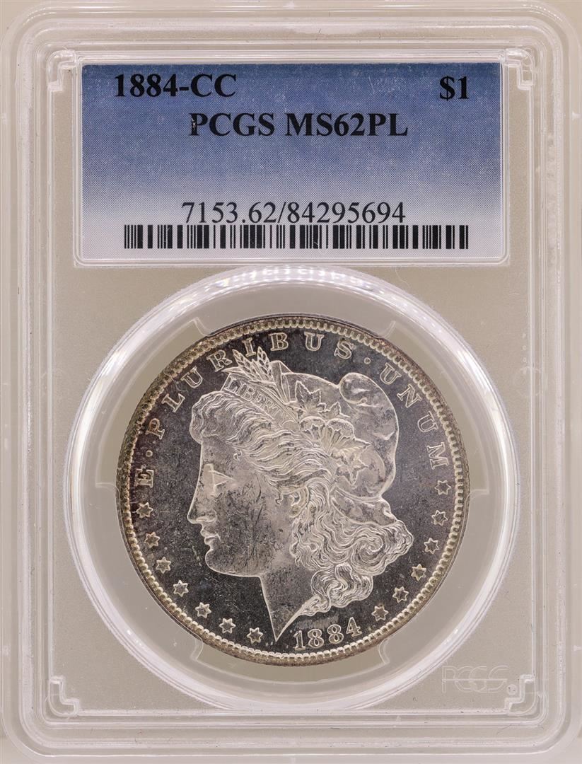 One 1884-CC $1 Morgan Silver Dollar Coin PCGS MS62PL. PCGS Graded.