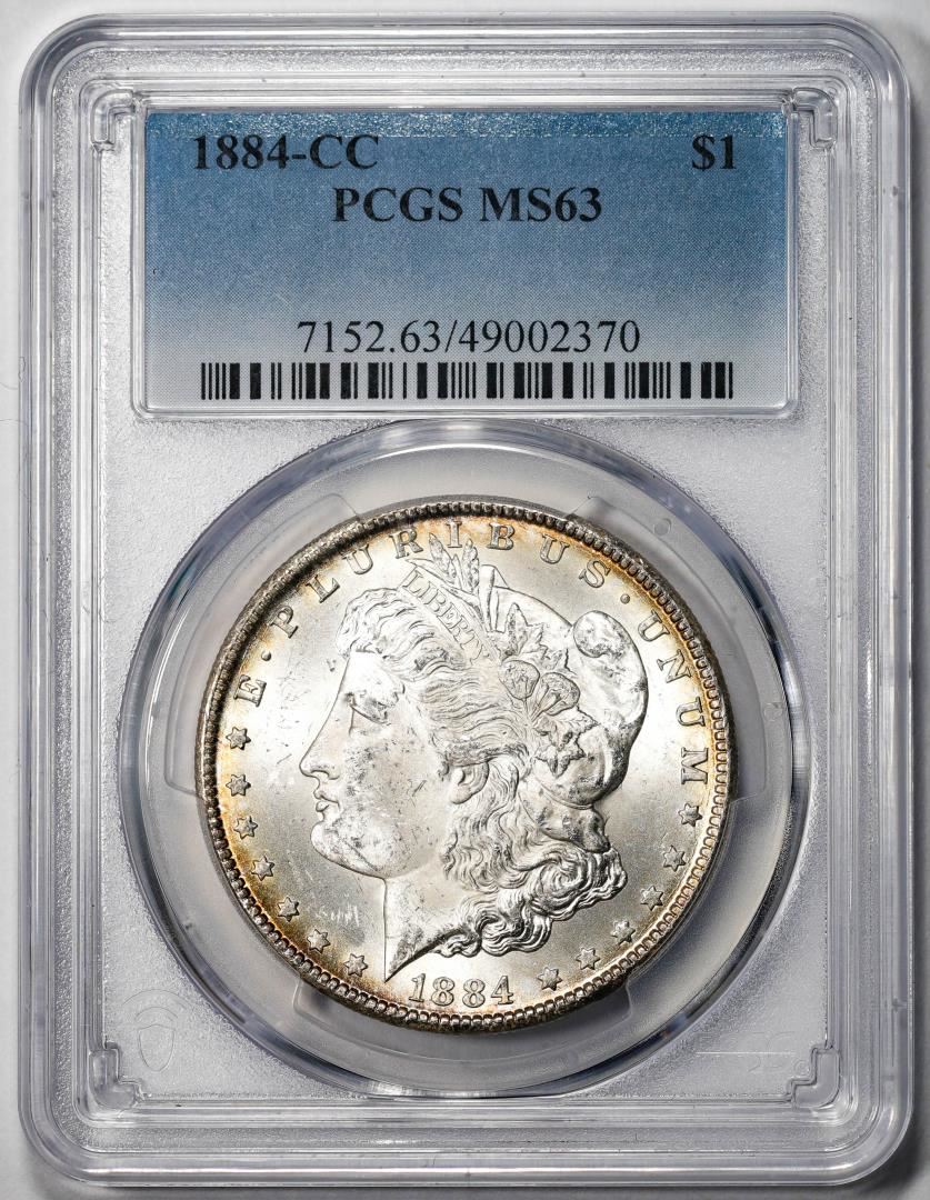 One 1884-CC $1 Morgan Silver Dollar Coin PCGS MS63. PCGS Graded.