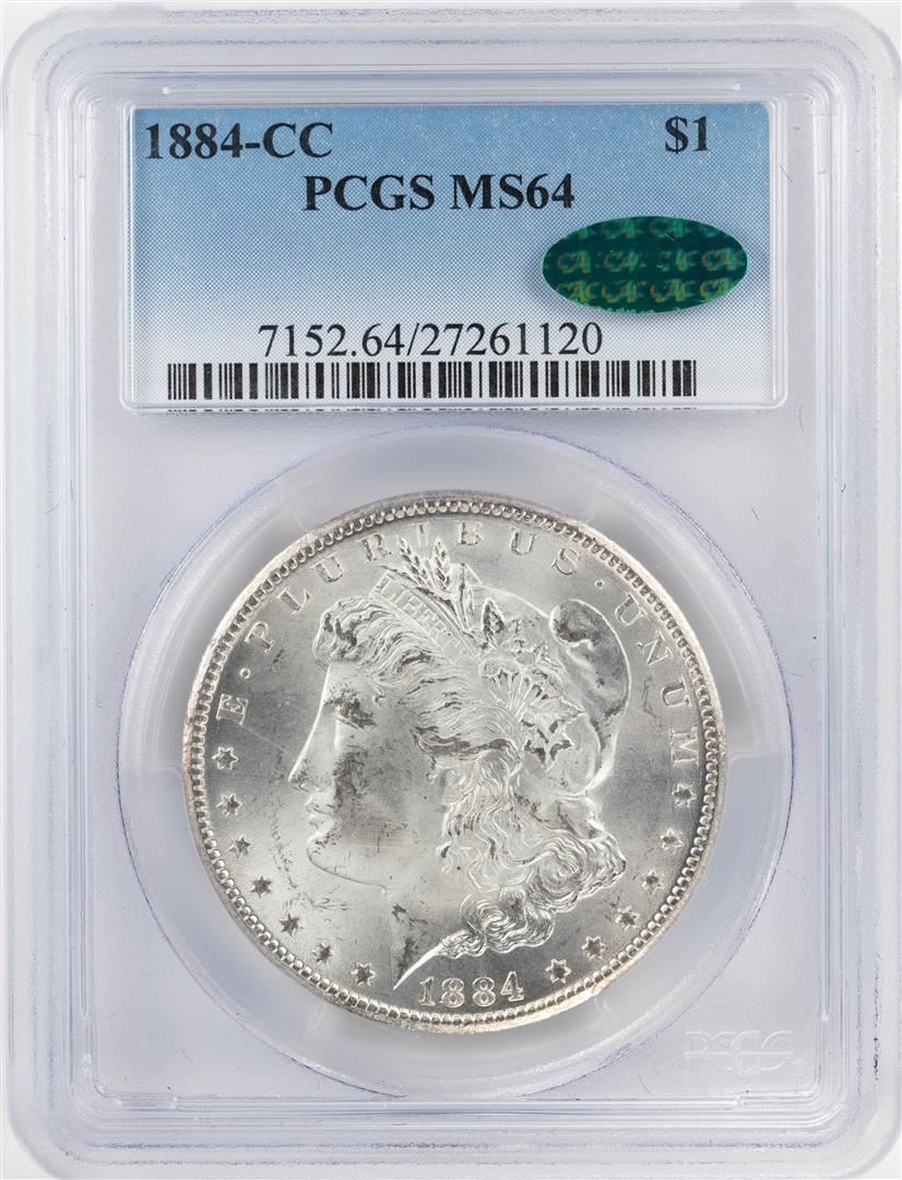 One 1884-CC $1 Morgan Silver Dollar Coin PCGS MS64 CAC. PCGS Graded.