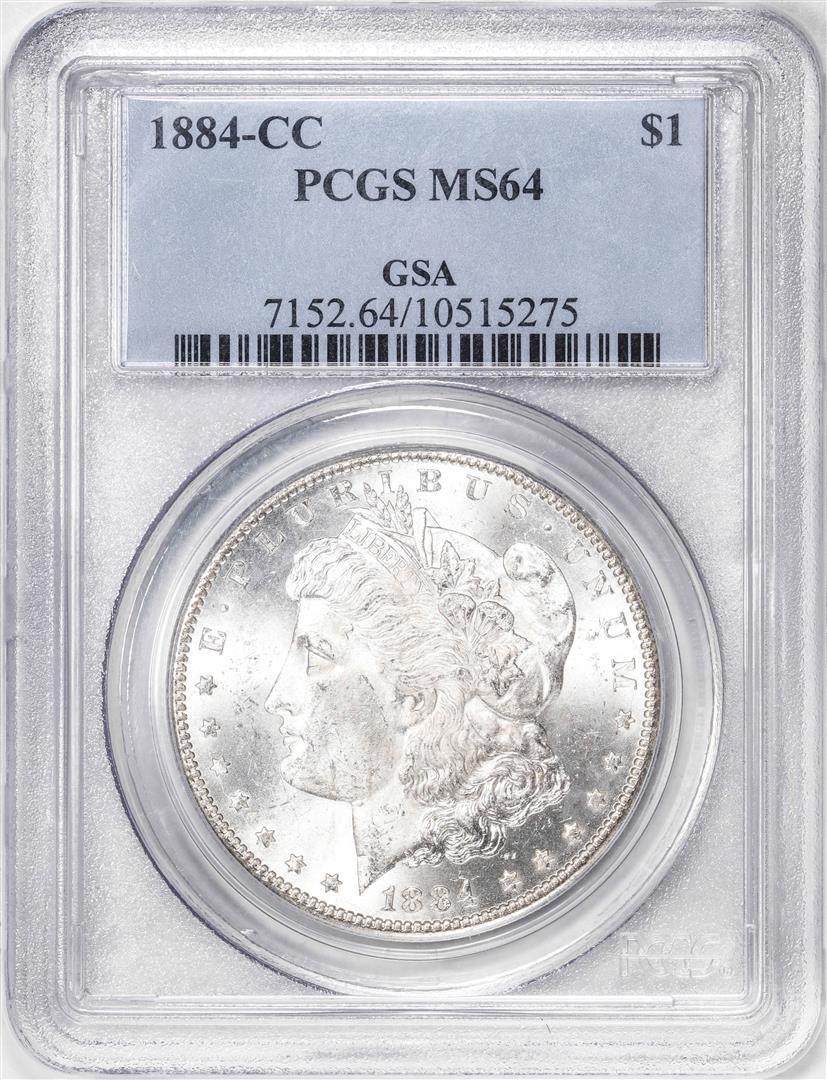 One 1884-CC $1 Morgan Silver Dollar Coin PCGS MS64 GSA Hoard. PCGS Graded.