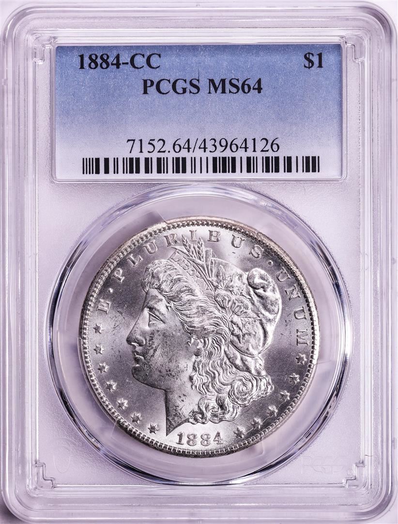 One 1884-CC $1 Morgan Silver Dollar Coin PCGS MS64. PCGS Graded.