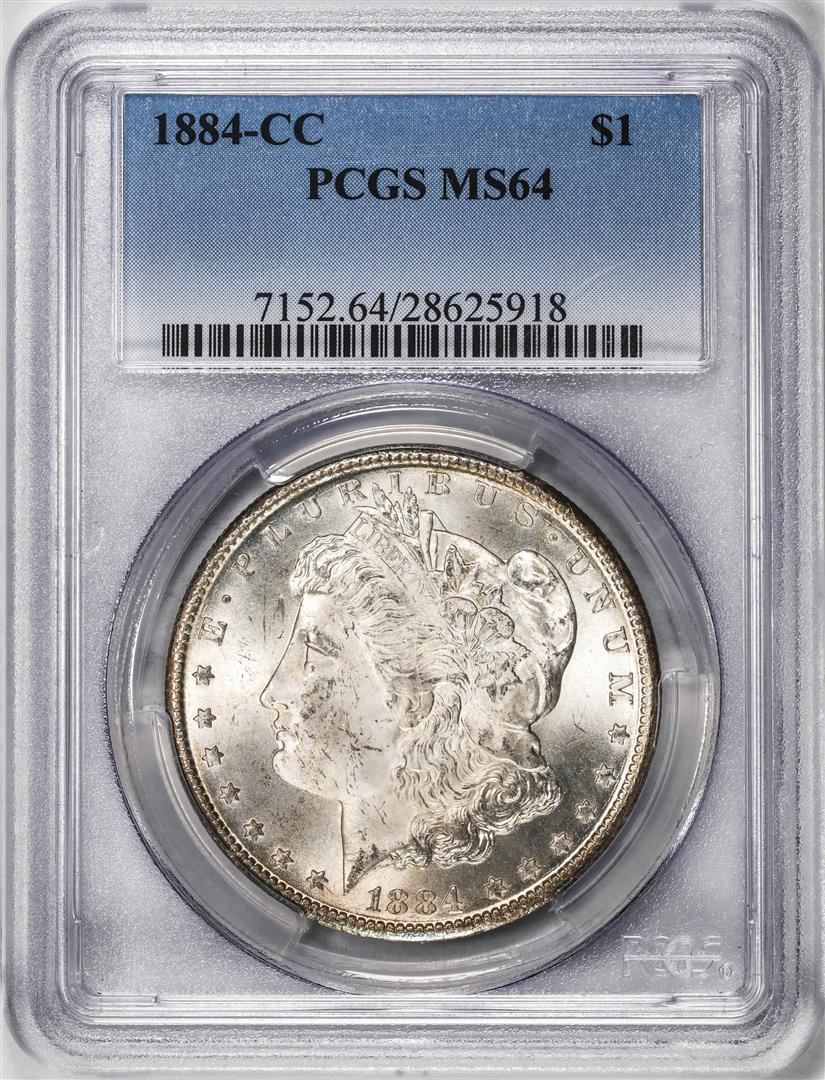 One 1884-CC $1 Morgan Silver Dollar Coin PCGS MS64. PCGS Graded.