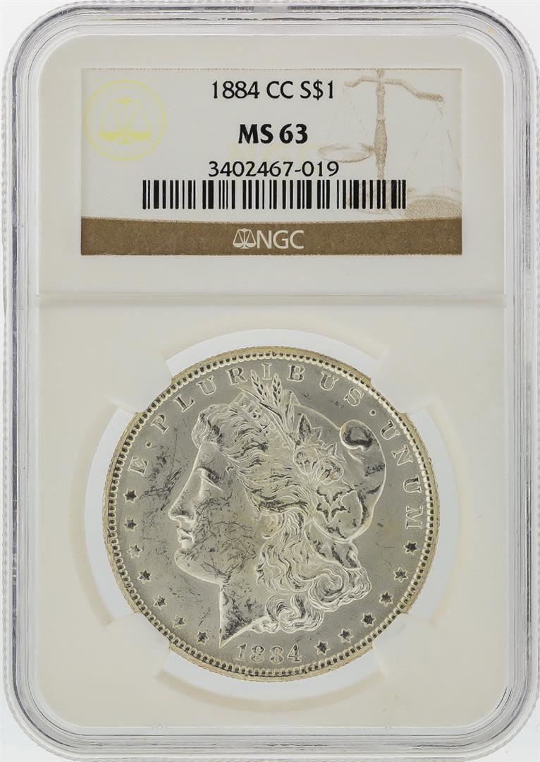 One 1884-CC $1 Morgan Silver Dollar NGC Graded MS63. NGC Certified.