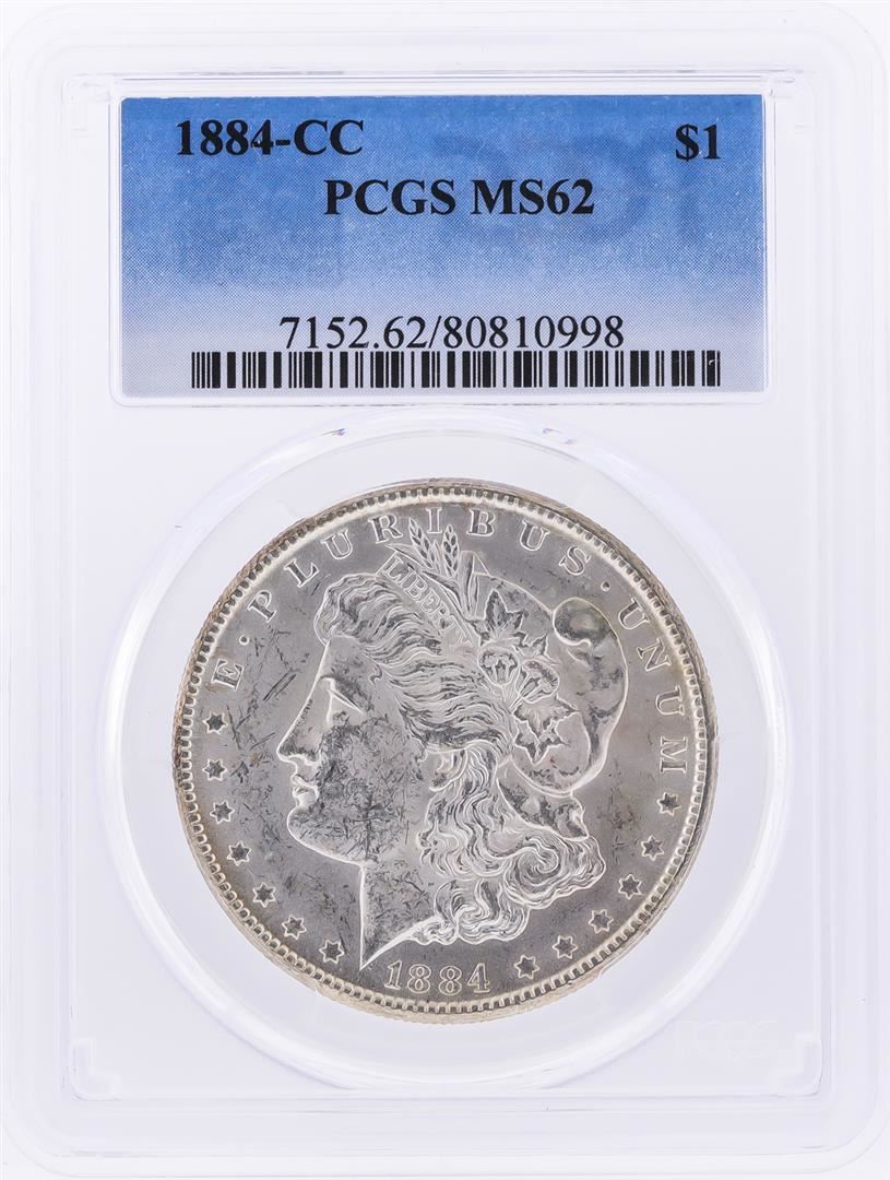 One 1884-CC $1 Morgan Silver Dollar PCGS Graded MS62. PCGS Graded.