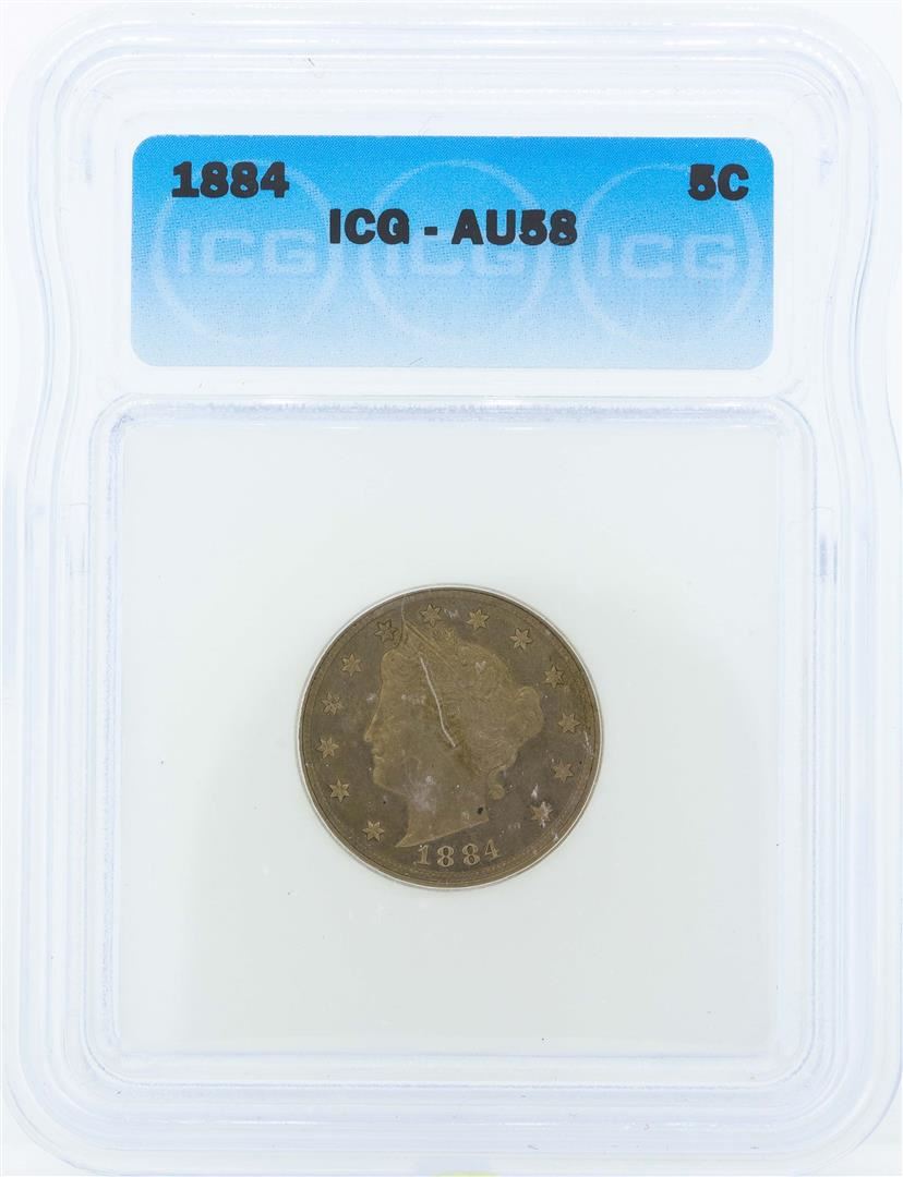 One 1884 Liberty Head Nickel Coin ICG AU58. ICG Certified.