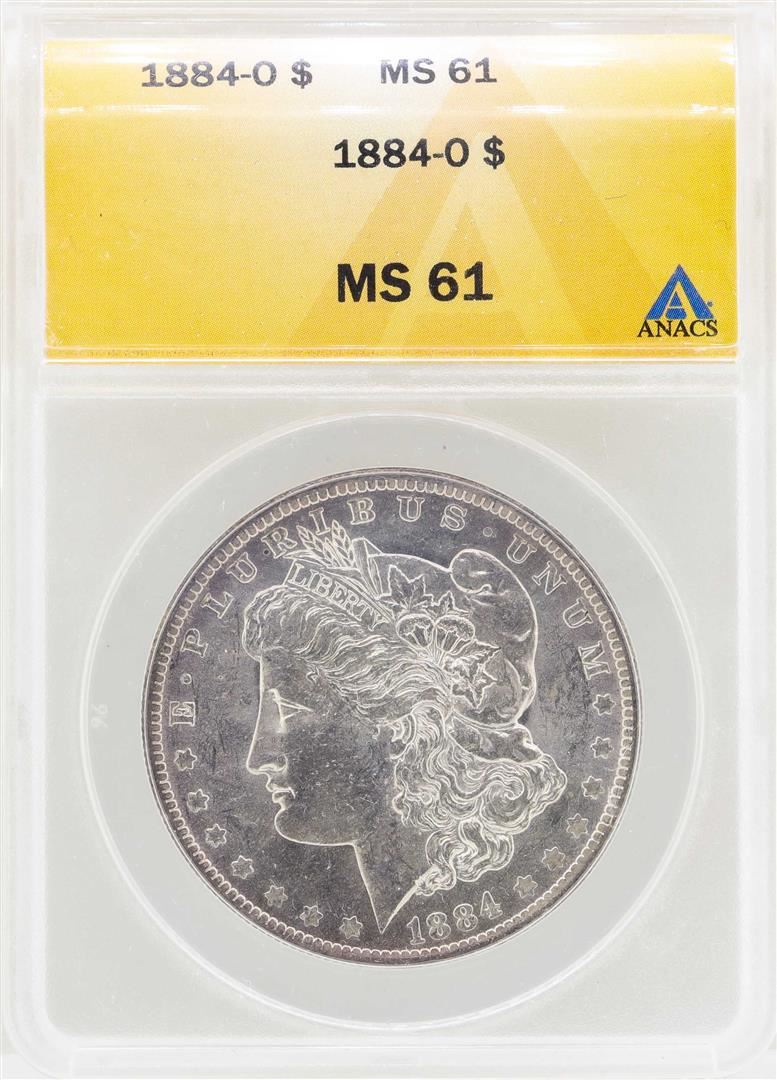 One 1884-O $1 Morgan Silver Dollar Coin ANACS MS61. ANACS Certified.