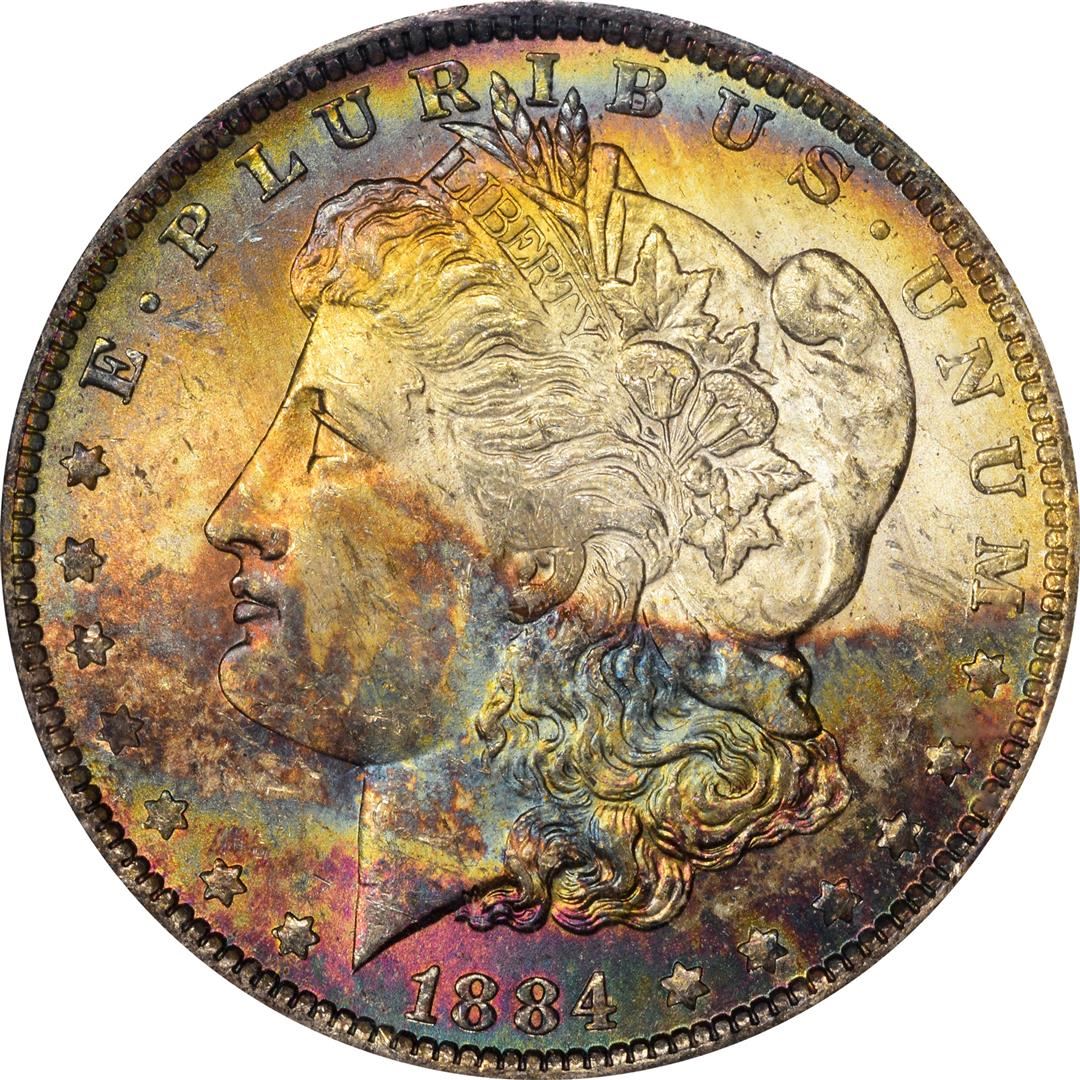 One 1884-O $1 Morgan Silver Dollar Coin ANACS MS62 Amazing Toning. ANACS Certified.
