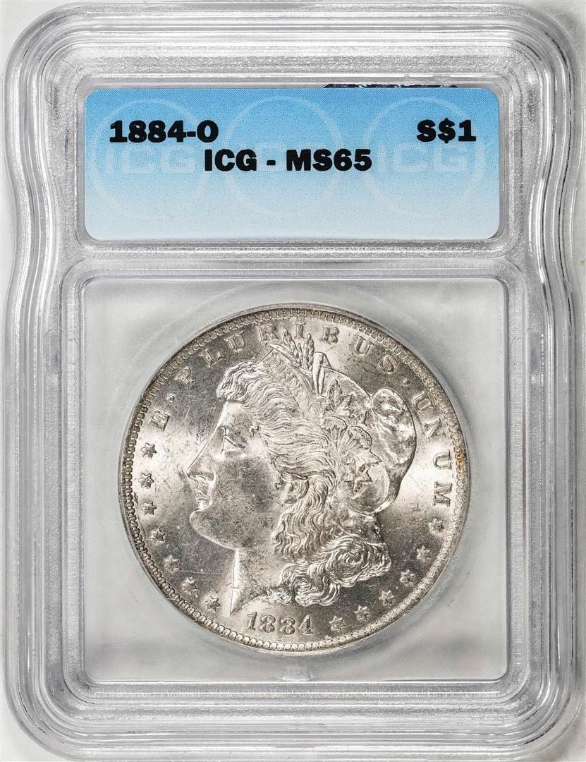 One 1884-O $1 Morgan Silver Dollar Coin ICG MS65. ICG Certified.