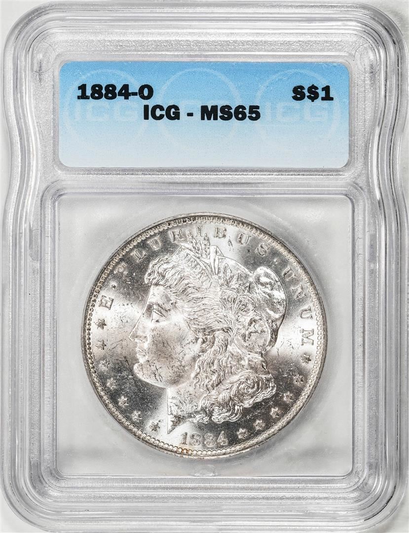 One 1884-O $1 Morgan Silver Dollar Coin ICG MS65. ICG Certified.