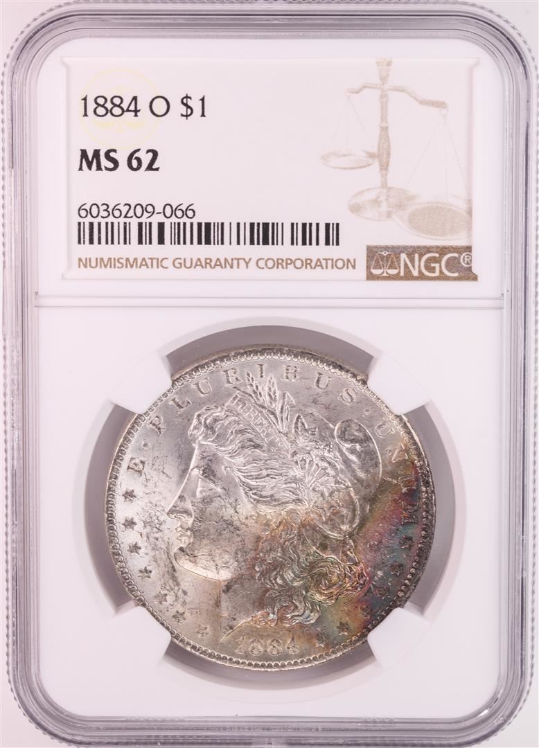 One 1884-O $1 Morgan Silver Dollar Coin NGC MS62 Great Toning. NGC Certified.