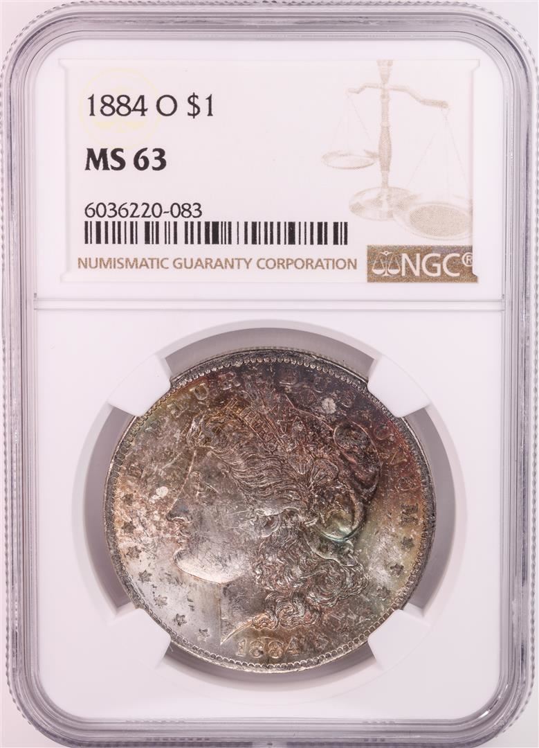 One 1884-O $1 Morgan Silver Dollar Coin NGC MS63 Great Toning. NGC Certified.