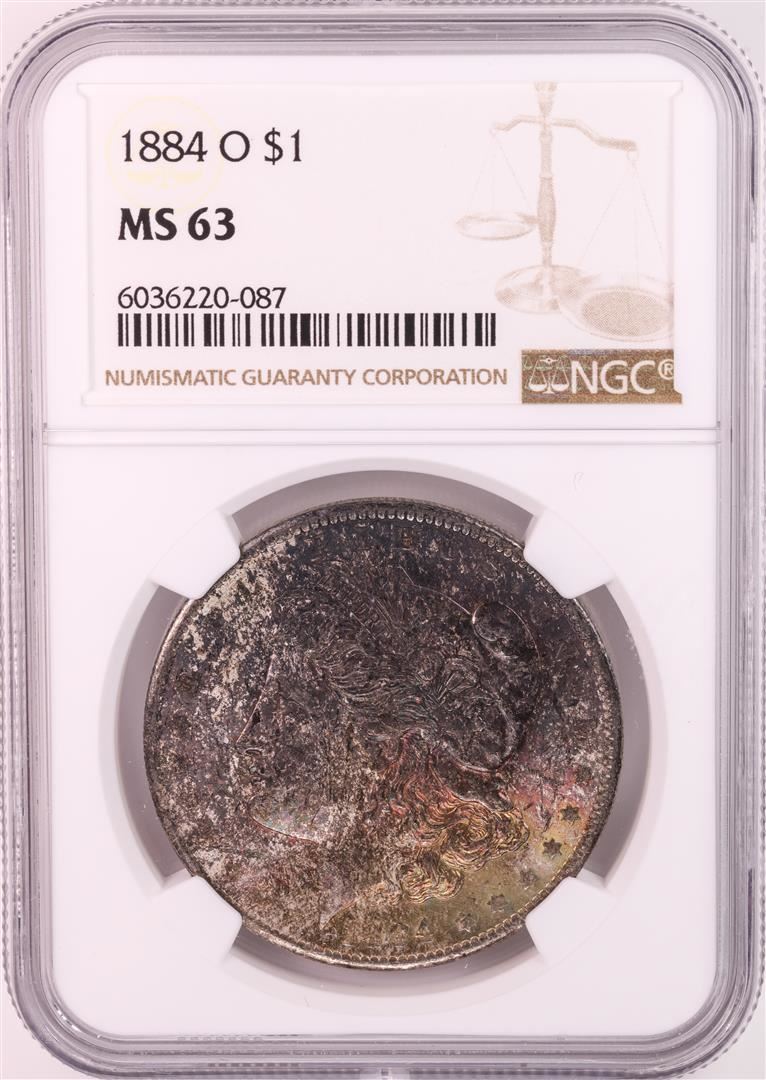 One 1884-O $1 Morgan Silver Dollar Coin NGC MS63 Great Toning. NGC Certified.