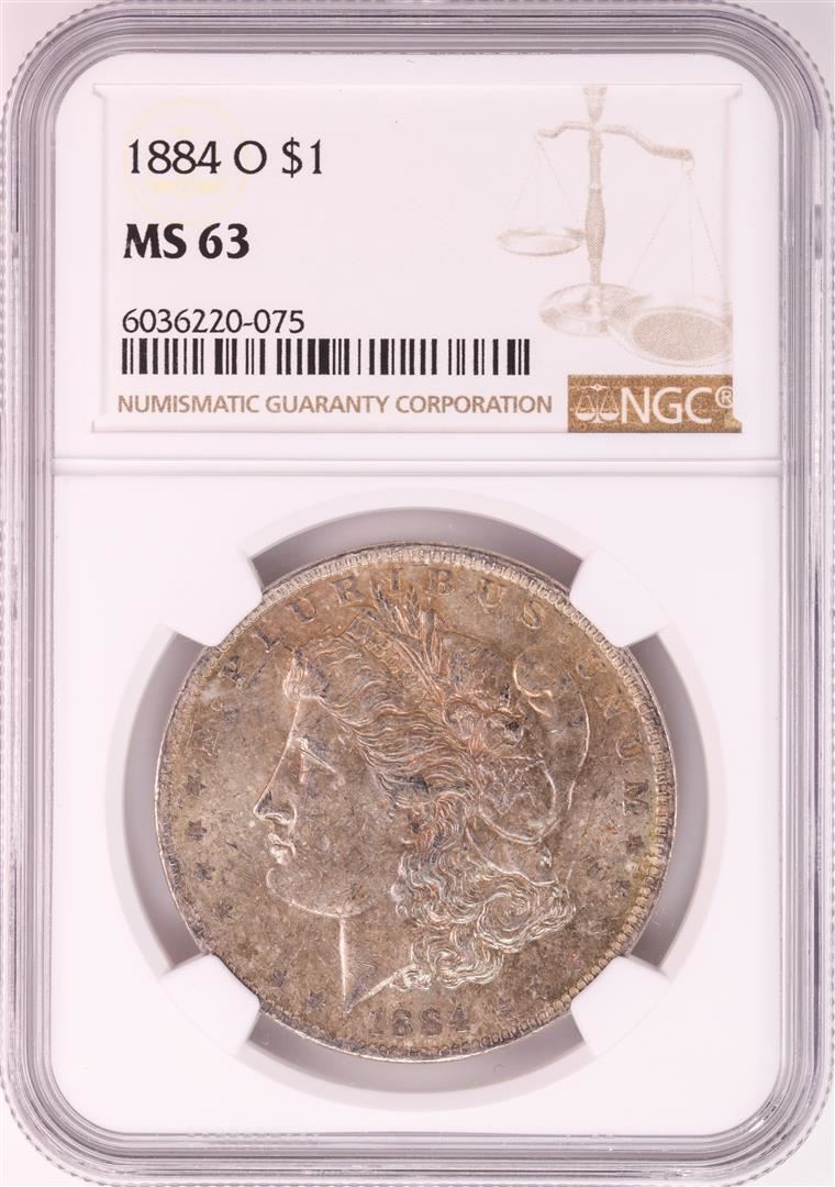 One 1884-O $1 Morgan Silver Dollar Coin NGC MS63 Nice Toning. NGC Certified.