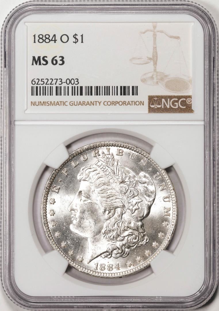 One 1884-O $1 Morgan Silver Dollar Coin NGC MS63. NGC Certified.