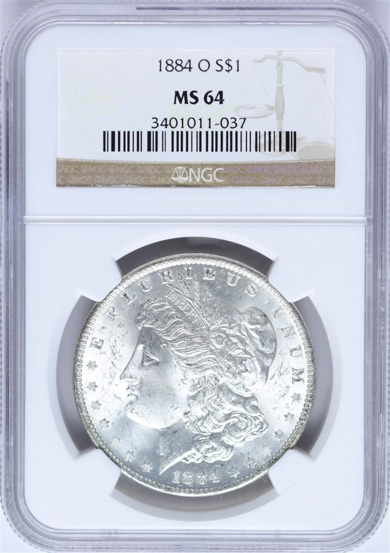 One 1884-O $1 Morgan Silver Dollar Coin NGC MS64 Amazing Toning. NGC Certified.