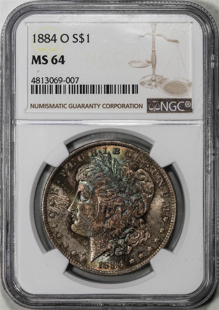 One 1884-O $1 Morgan Silver Dollar Coin NGC MS64 Nice Toning. NGC Certified.