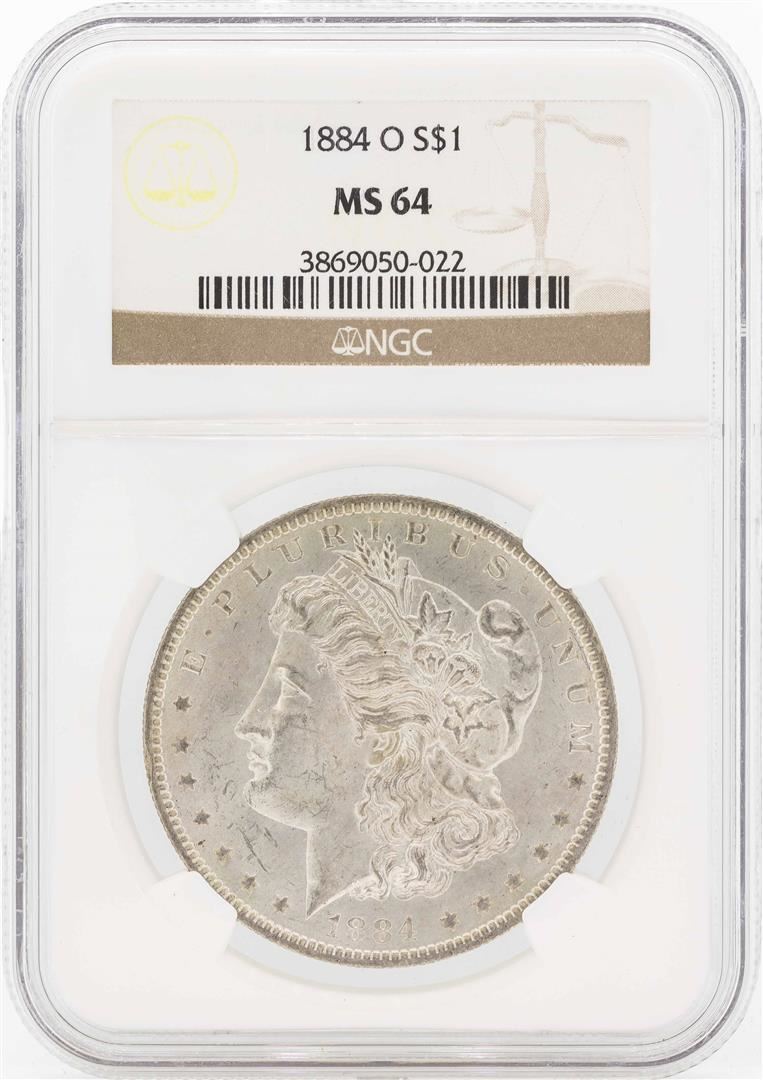 One 1884-O $1 Morgan Silver Dollar Coin NGC MS64. NGC Certified.