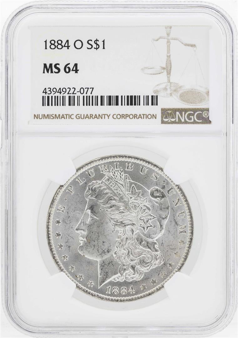 One 1884-O $1 Morgan Silver Dollar Coin NGC MS64. NGC Certified.