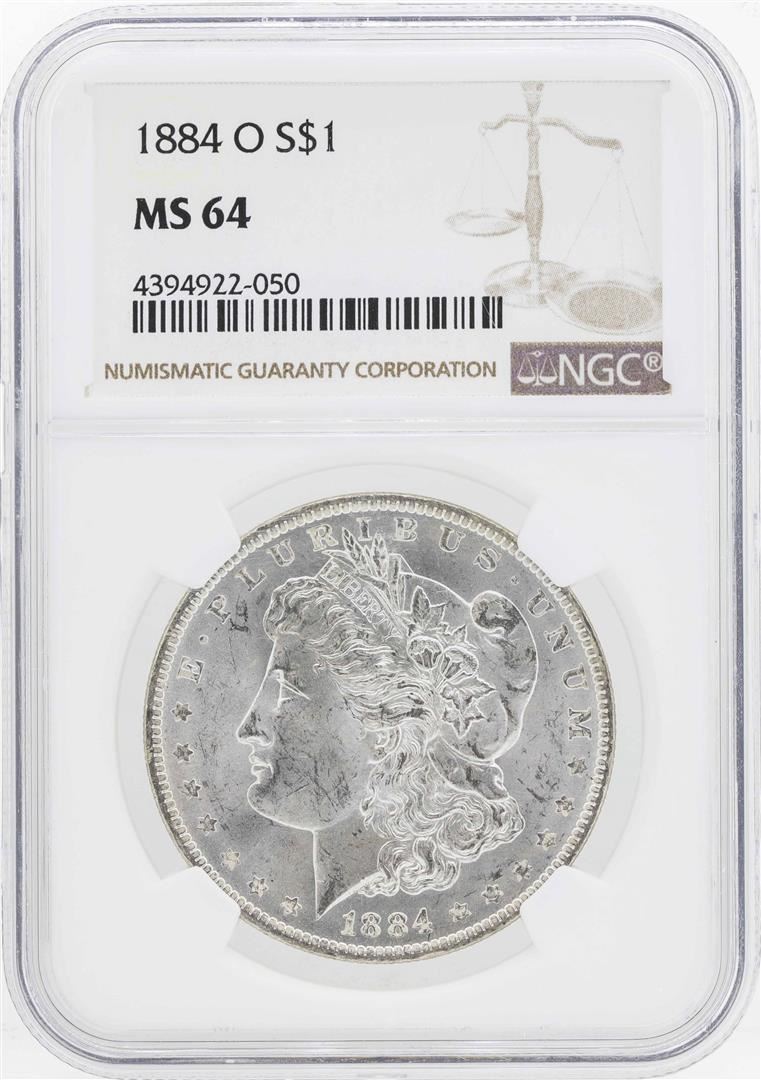 One 1884-O $1 Morgan Silver Dollar Coin NGC MS64. NGC Certified.