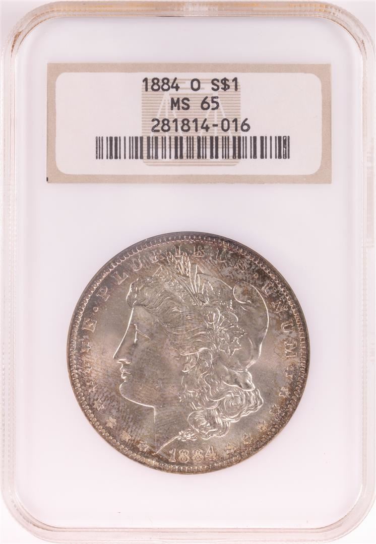 One 1884-O $1 Morgan Silver Dollar Coin NGC MS65 Nice Toning Old Holder. NGC Certified.