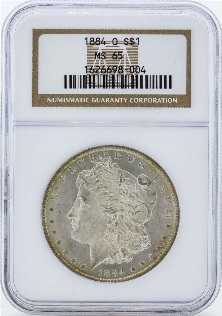 One 1884-O $1 Morgan Silver Dollar Coin NGC MS65. NGC Certified.