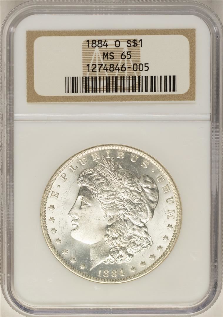 One 1884-O $1 Morgan Silver Dollar Coin NGC MS65. NGC Certified.