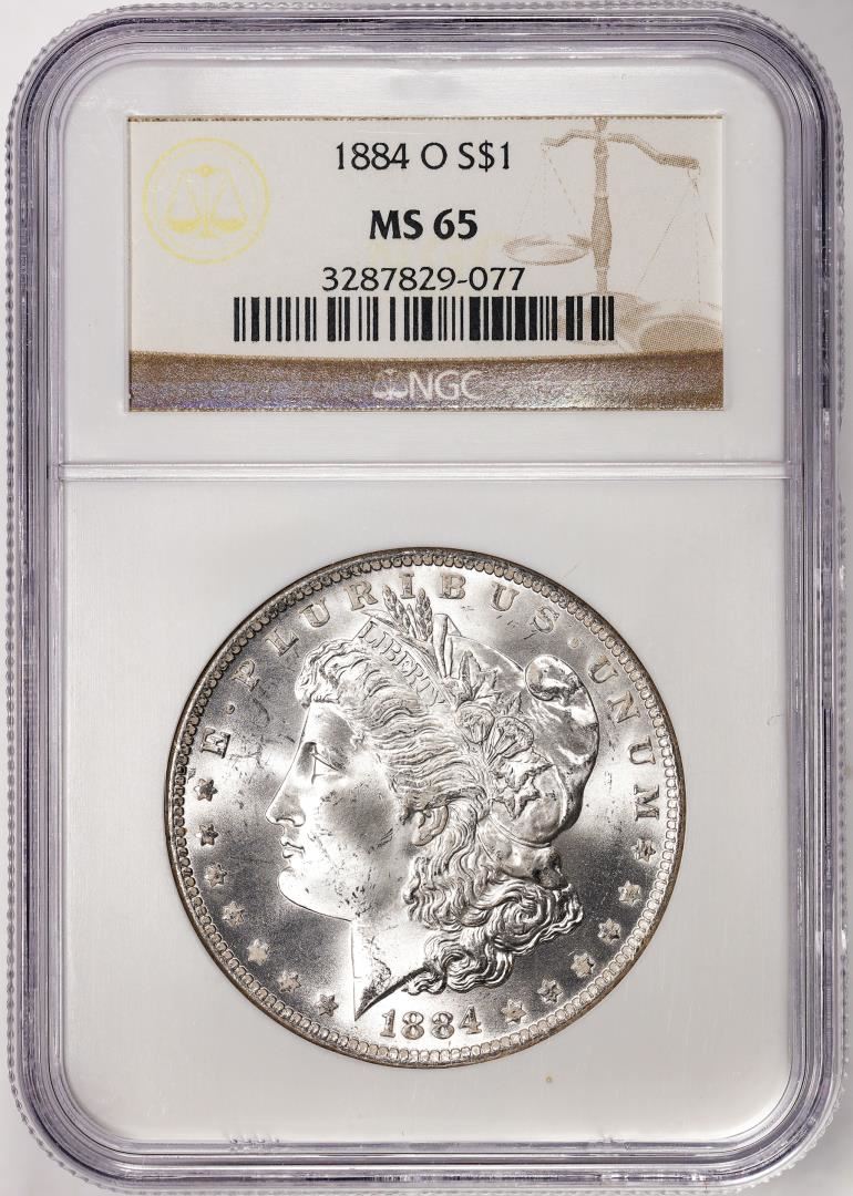 One 1884-O $1 Morgan Silver Dollar Coin NGC MS65. NGC Certified.