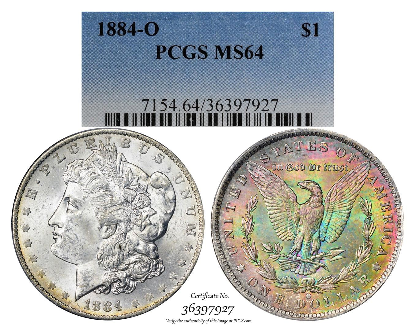 One 1884-O $1 Morgan Silver Dollar Coin PCGS MS64 Amazing Toning. PCGS Graded.