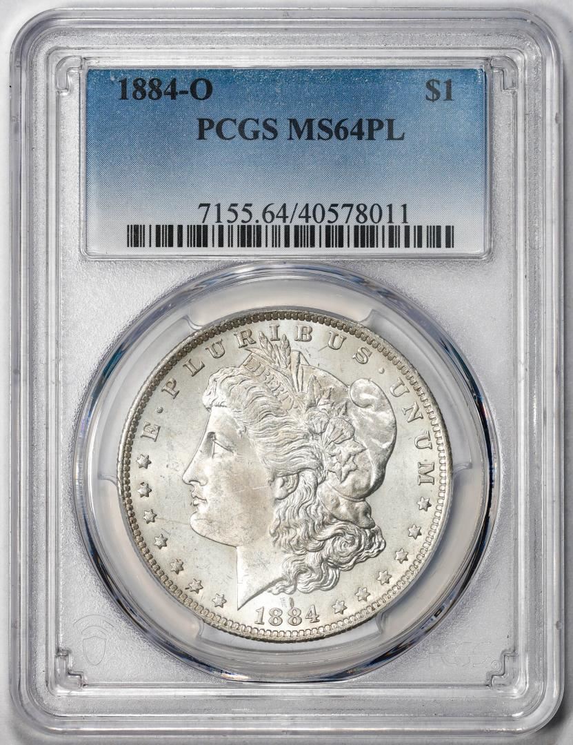 One 1884-O $1 Morgan Silver Dollar Coin PCGS MS64PL.