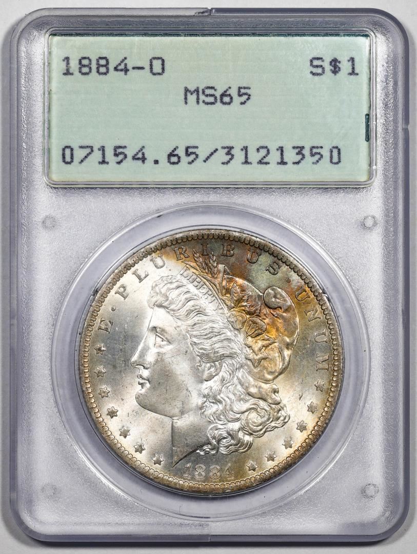 1884-O $1 Morgan Silver Dollar Coin PCGS MS65 Great Toning Old Green Rattler